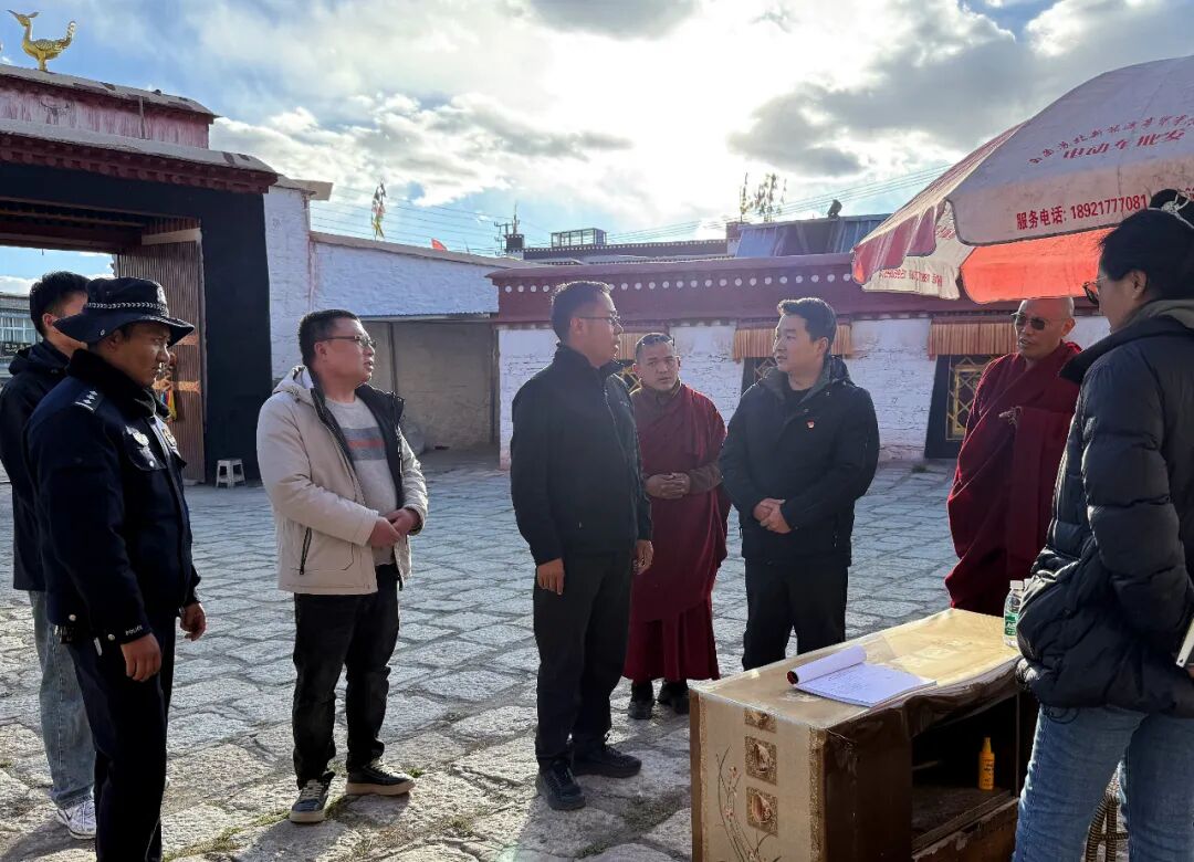 在塔林曲地寺管会,普布扎西同寺管会负责同志进行了深入交流。强调,要坚持我国宗教中国化方向,依法依规管理宗教事务,促进宗教和顺、社会和谐、民族和睦。要切实做好寺庙安全隐患排查和文物保护工作,确保寺庙财产和僧众安全。