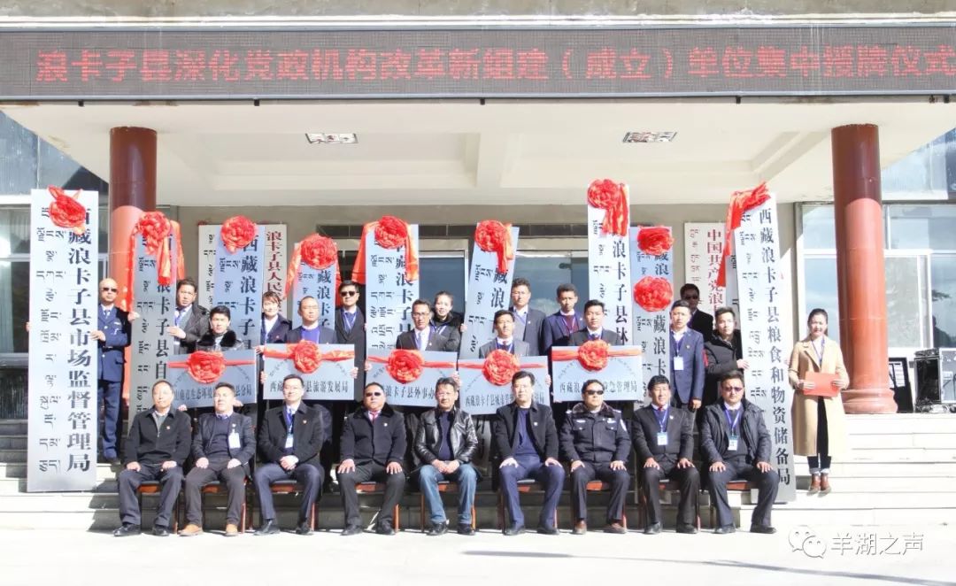 3月21日,浪卡子县隆重举行新组建(成立)单位集中授牌仪式,市人大常委会副主任、县委书记次仁出席仪式并讲话。县领导钱松,汪进,扎西,索朗格桑,普布云丹,索朗多吉,巴桑次旦,平措曲达等出席仪式,县委各工作机关,县政府各工作部门主要负责人及新组建(成立)部门领导班子成员参加仪式。