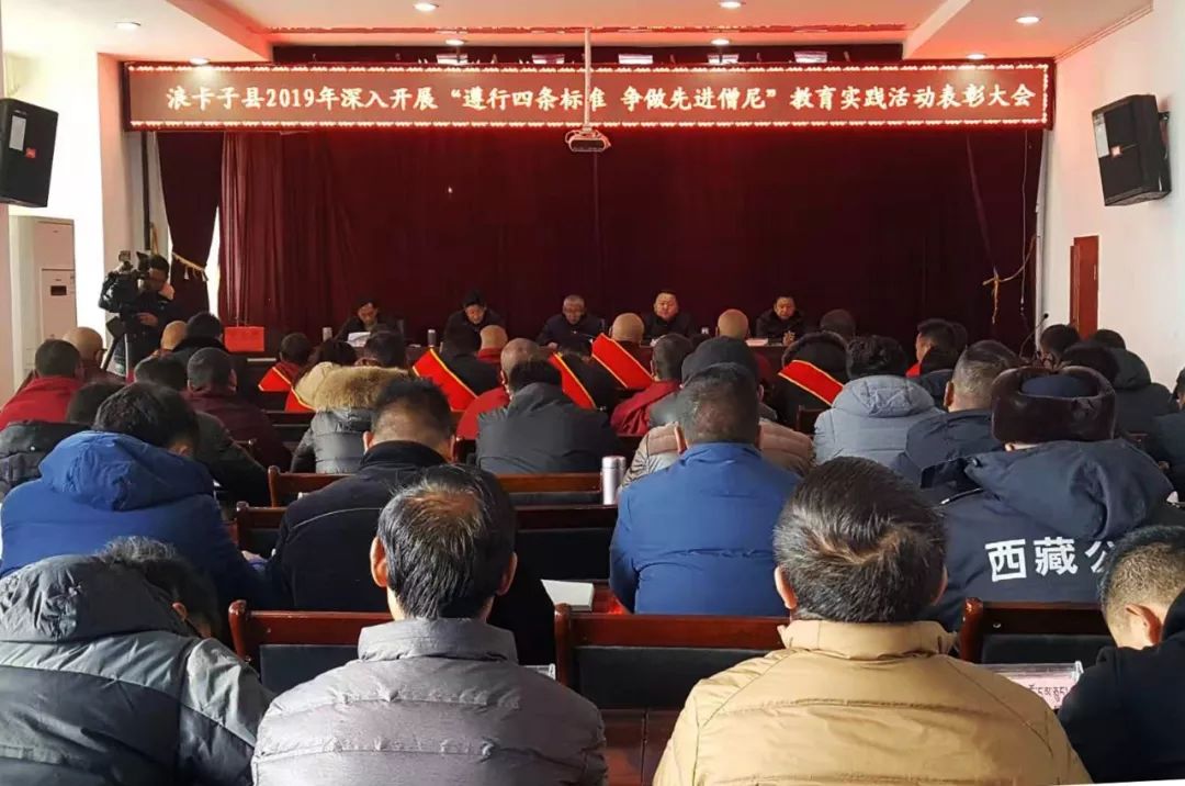 会上,县政协主席扎西顿珠宣读《中共浪卡子县委 县人民政府关于表彰2019年度“遵行四条标准 争做先进僧尼”教育实践活动模范寺庙和优秀僧尼,优秀组织单位,优秀驻寺干部,优秀宗教工作者,亚青寺接返先进工作者的表彰决定》,对教育实践活动中涌现出的8座和谐模范寺庙、110名爱国守法先进僧尼、4个优秀组织单位、12名优秀驻寺干部、3名优秀宗教工作者、2名亚青寺接返先进工作者进行了表彰。受表彰的先进集体和先进个人代表分别作了交流发言。